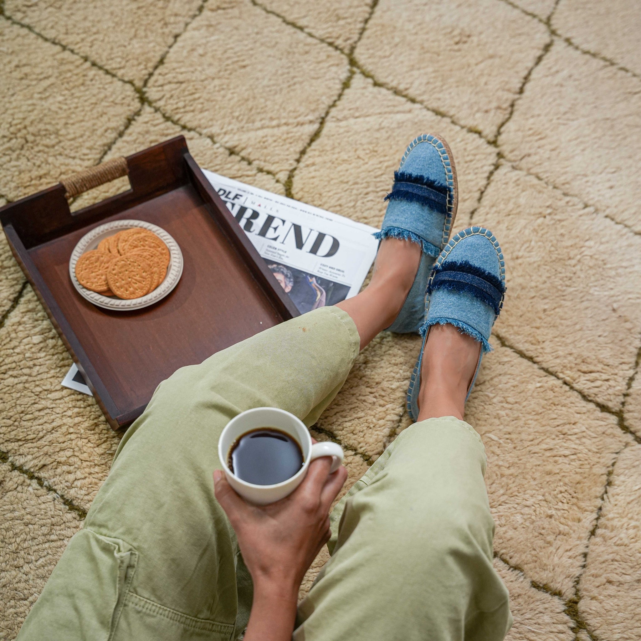Saira Closed Back Espadrilles are designed for the woman who values comfort as much as style. Crafted in soft denim with hand-drawn fringe detailing across the upper, this pair carries subtle character without trying too hard.