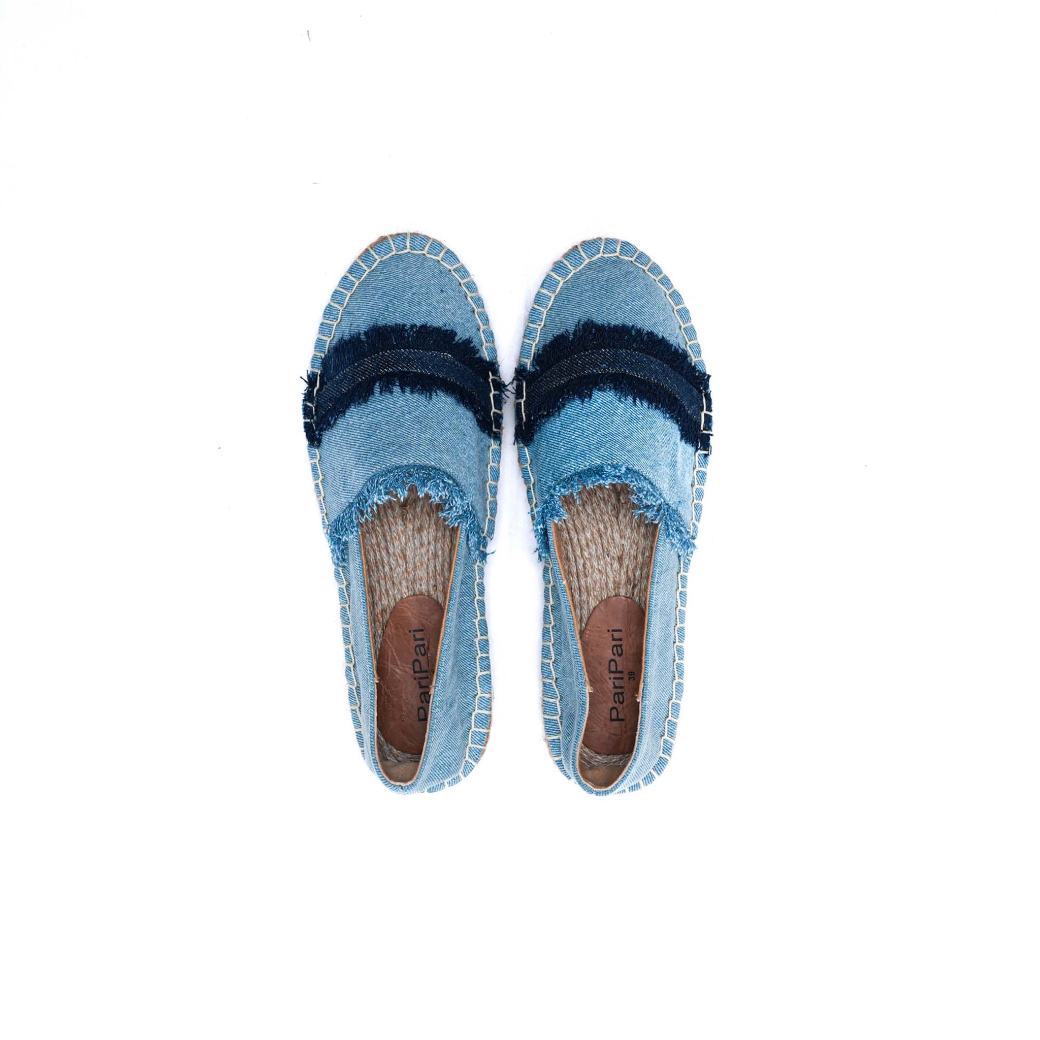 · Upper is made in denim with hand-drawn fringe detail with 100% cotton lining.
