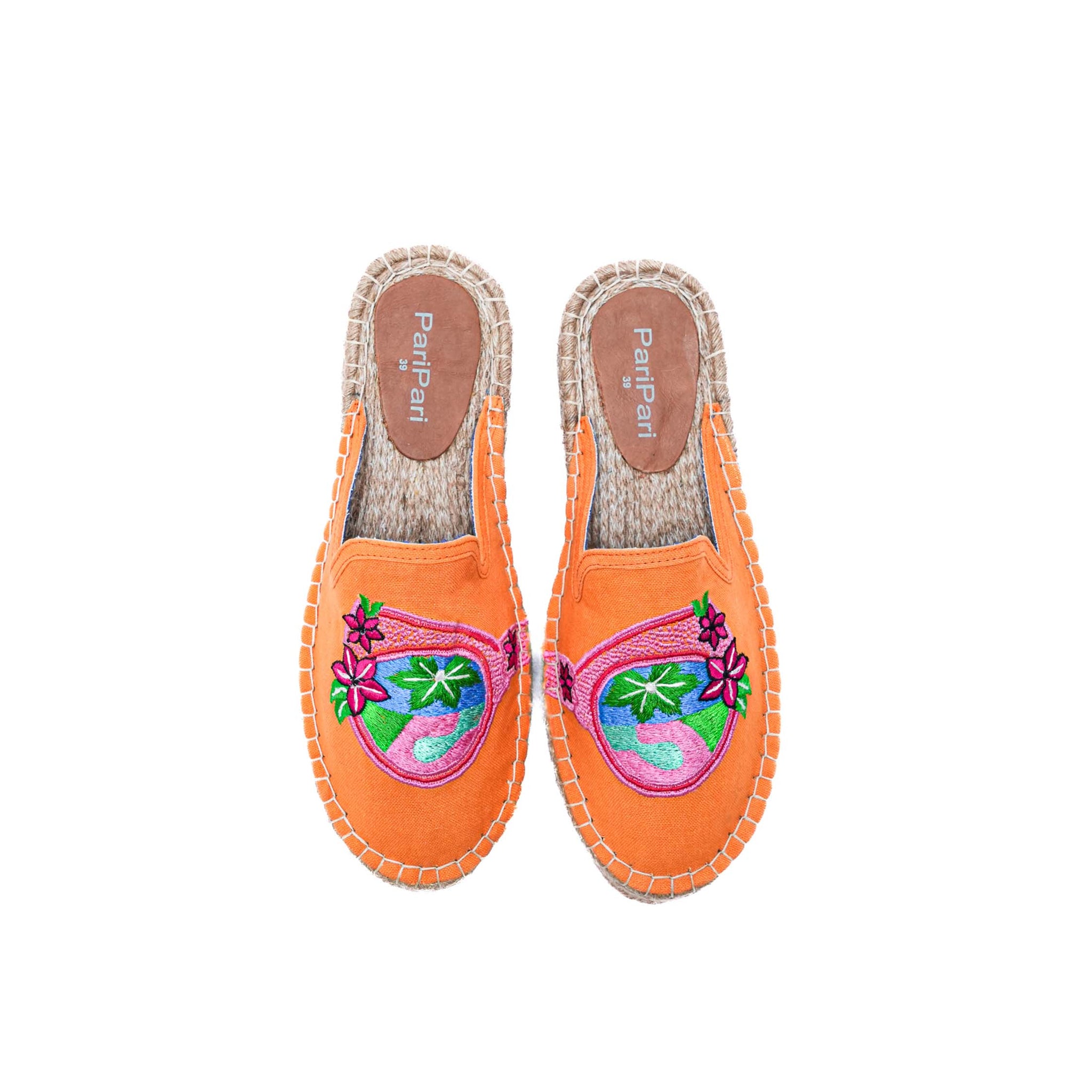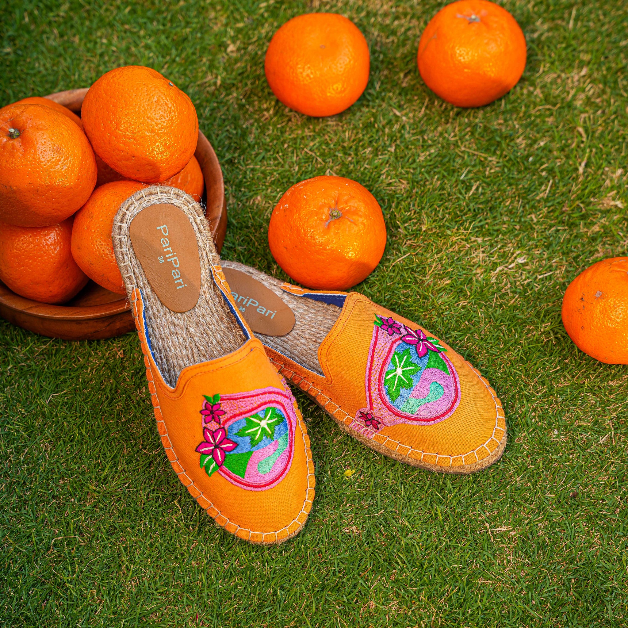 The Sunny Espadrilles are summer turned all the way up. Tangy, playful, and bursting with colour, this pair is designed to bring instant mood to your wardrobe. Available in vibrant orange and bold blue, each shoe features intricately embroidered sunglasses across the upper — cheeky, detailed, and impossible to miss.